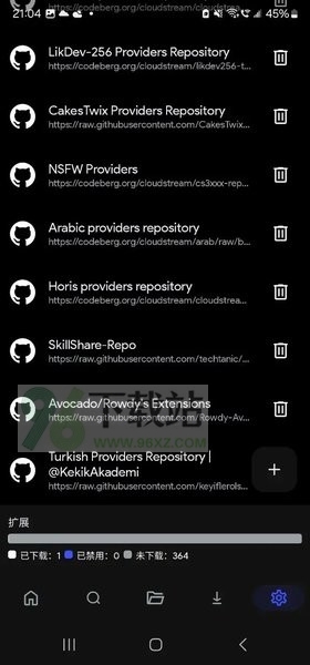 4.如果主要想看中文内容,可以再单独开一个叫“Horisprovidersrepository”的仓库。进去之后挑几个熟悉的中文站插件,比如Ddys、Libvio、Supervod,一个个点安装就行。