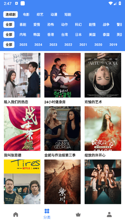 2. 在“影视”区,可按电影、电视剧、综艺筛选,点任意海报直接播放;