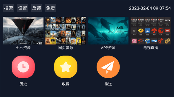 把上面复制好的接口链接粘贴进去,保存一下,主页瞬间就会加载出各种分类内容。这些分类(像七七资源、网页资源、电视直播等)都是可以根据接口灵活变化的。