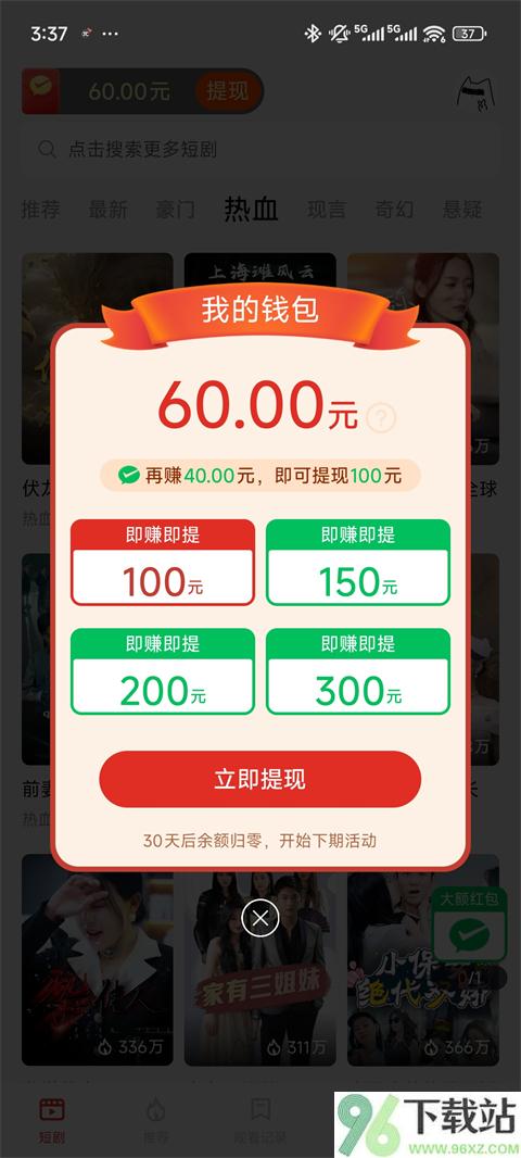 4、看视频能直接换红包,达到提现门槛后就能申请到账,流程简单明了。