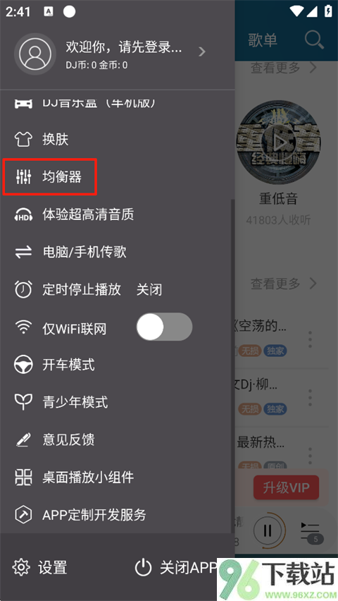 2、在设置菜单里找到并点击【均衡器】选项;