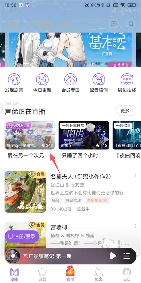 1、先打开漫播APP,随便点进一个正在直播的房间。