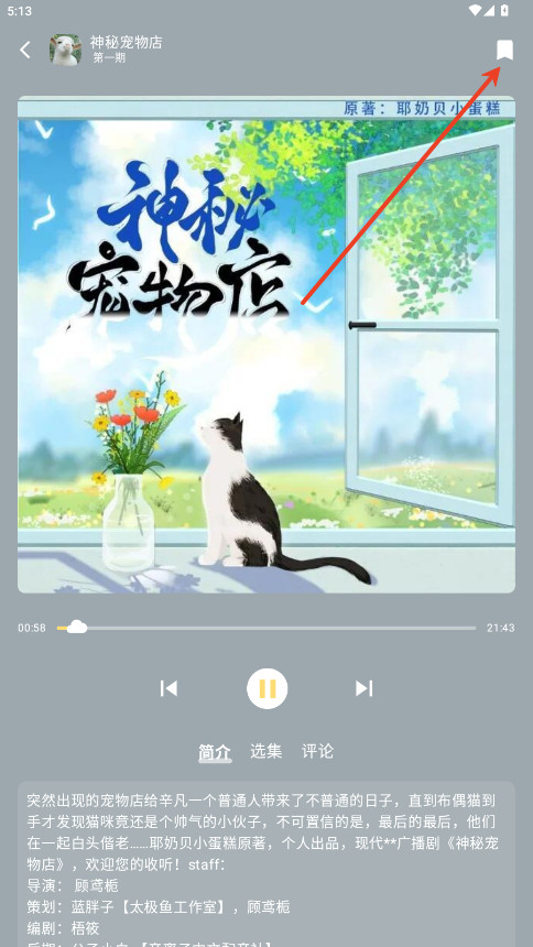 3、遇到特别喜欢的剧集或单集,别忘了点那个小星星图标,加进收藏夹以后回听就不用再翻半天了。