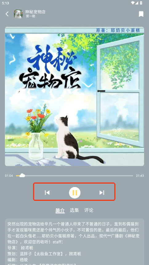 2、点开任意一集开始播放后,界面下方有基础控制按钮——暂停、切歌、进度条拖拽都很顺手,想跳到哪段剧情基本一滑就到位。