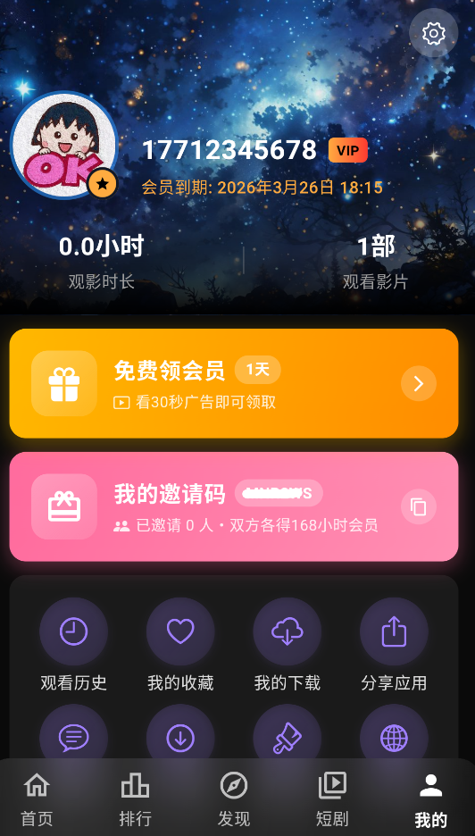 想要使用夜猫影视追剧,首先得注册个账号,不然搜索和播放功能都无法使用。注册过程挺随意的,随便填个符合规则的11位号码就能过,不用收验证码,门槛极低。这软件片源确实多,不管是国内大火的剧还是国外冷门佳片,基本都能搜到。看片的时候功能也挺全,加速播放、下载缓存、发弹幕这些都有,遇到卡顿还能换条线路或者投屏到电视上看,体验还算不错。