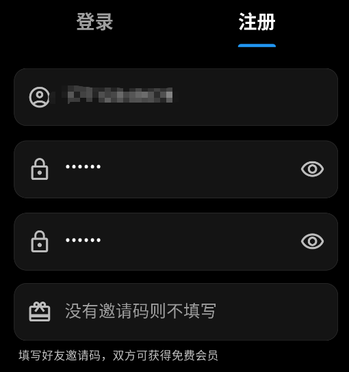 2、选右边那个注册选项,账号那栏随便填个11位数字,只要开头三位像手机号就行,密码自己设一个,填完点注册。