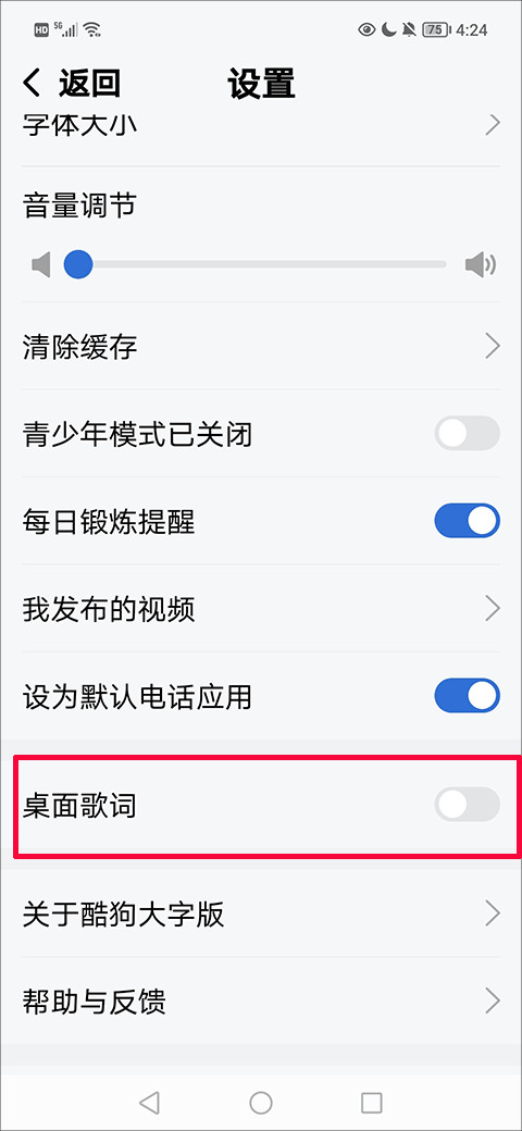2、进去后往下滑,能看到一个“桌面歌词”的选项,直接点它。