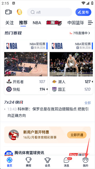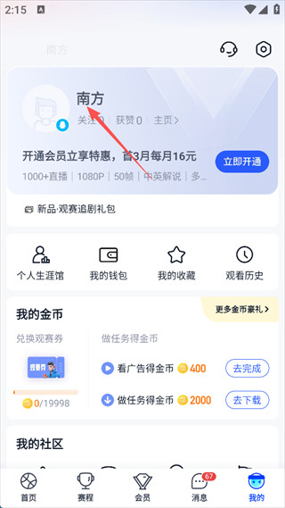 第一步,进入腾讯体育APP后,找到屏幕右下角的"我的"按钮并点击进入