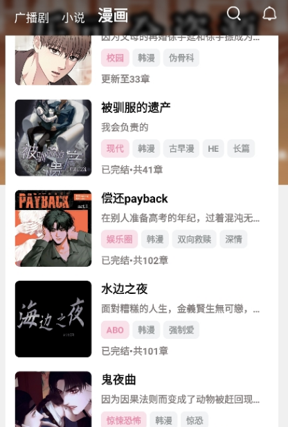 1、覆盖题材相当广,从都市甜宠到古风权谋,从灵异悬疑到青春校园,各类风格的小说、漫画和广播剧都能在这儿找到。