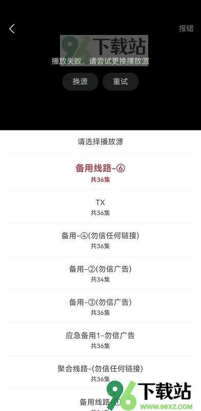 3、要是播放失败了,别慌,点一下切换播放源。