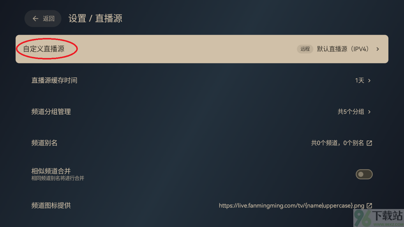 3、此刻,你会发现“自定义直播源”的入口,果断点开,准备迎接新的可能。