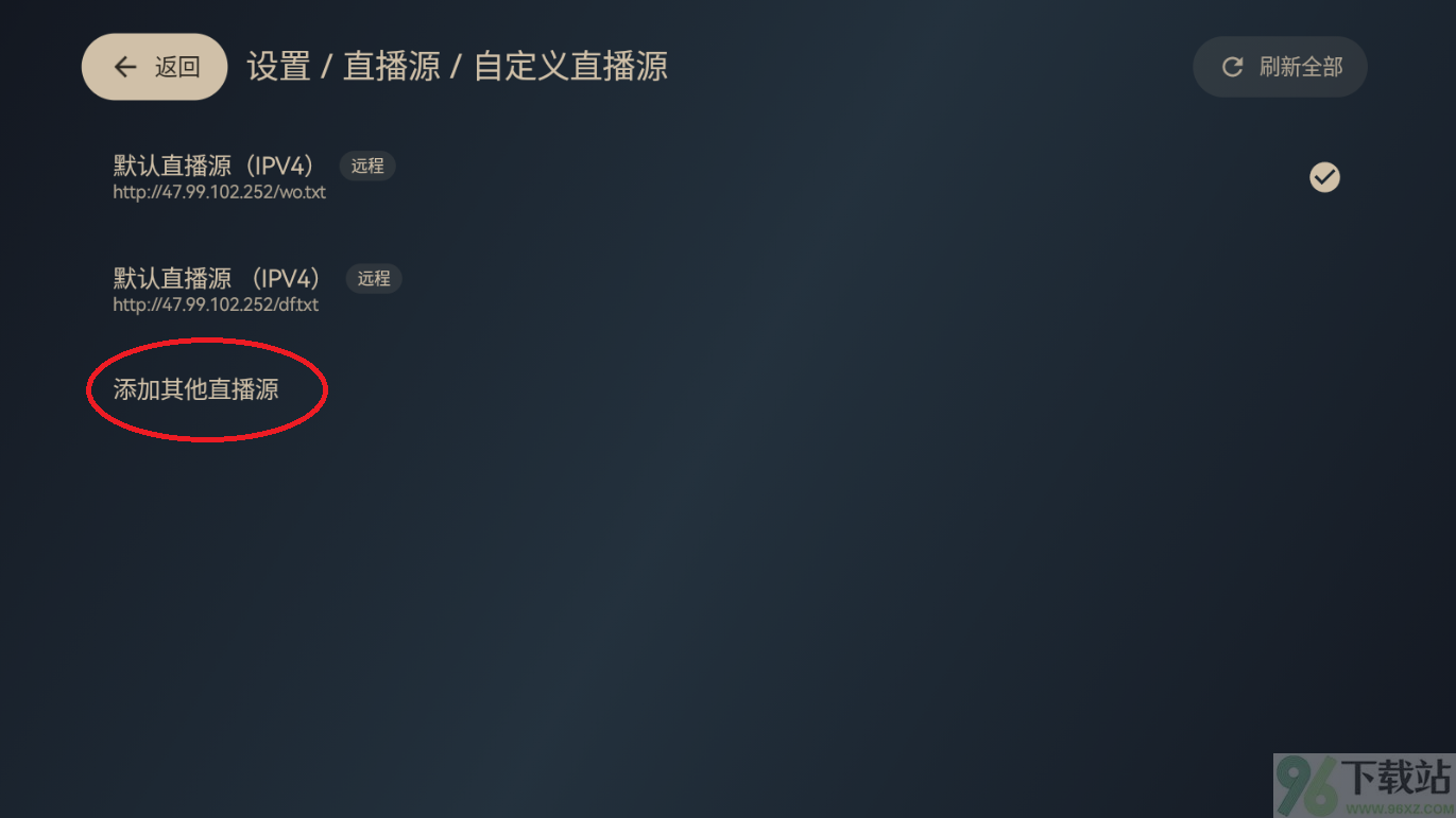 4、一个名为“添加其他直播源”的按钮跃入眼帘,毫不犹豫地点击它。