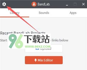 1、先打开最新版的BandLab,到首页之后,你注意看,有一个箭头指着一个小齿轮,点那个小齿轮。