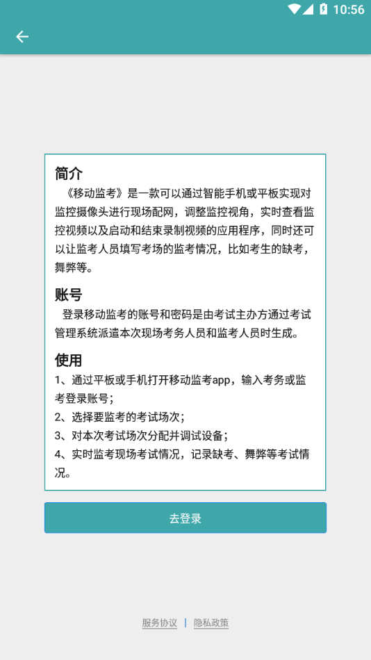 移动监考可以说是专门为监考人员量身定做的一款专业级手机助手,它把远程监考这件事变得既简单又高效,直接打破了传统监考的时空限制,通过这个平台,用户能像有了千里眼一样,实时且清晰地掌握考场里的每一个细节动向,不管是考生状态还是考场秩序都能尽收眼底,同时它还支持随意浏览和管理监考员的相关信息,功能设计得非常丰富且接地气,实打实地解决了考务工作中的各种痛点,这种极强的实用性让它成为了监考工作中的一把利器,让复杂的考务管理在手机上就能轻松流转,真心推荐给有需要的监考老师们上手体验一番。