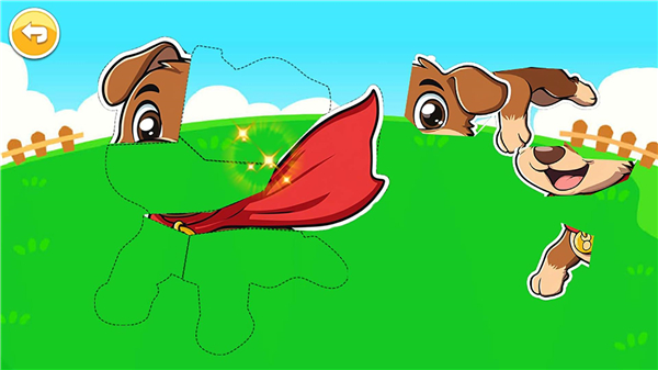 3、选好后屏幕左侧是空白的拼图位置,右侧散落着各种碎片,小朋友用手指拖动碎片到对应位置。