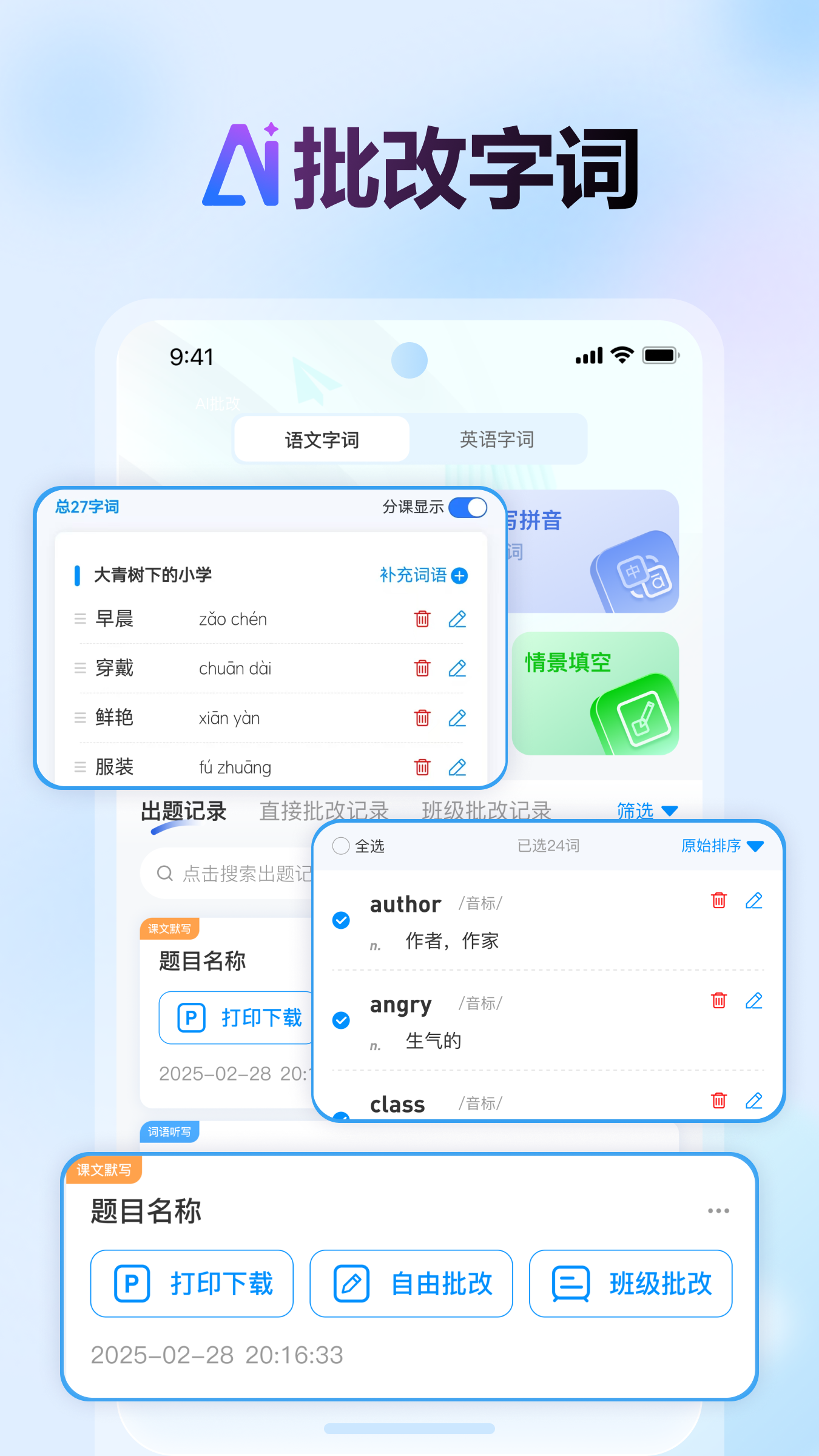 支持一次性把全班同学的作文都传上去,改完后还能统一导出来打印,特别省事。