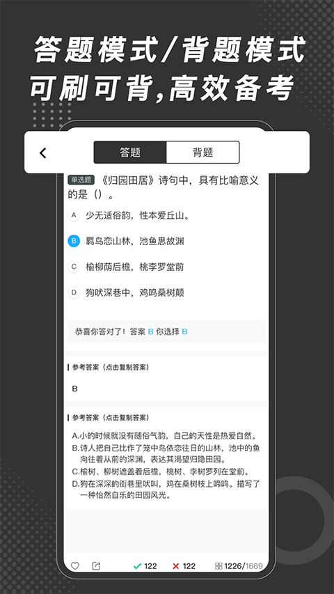 答:确认刷题时选了对应模式,App后台别杀掉,刷完退出重进刷新,基本就同步了。