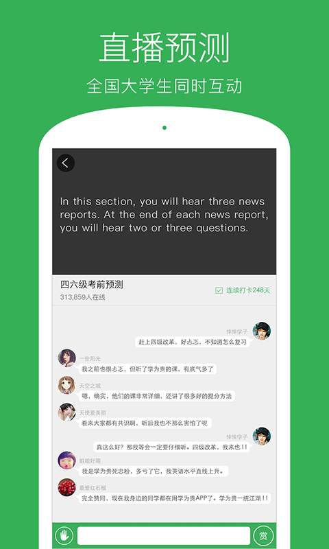 2、软件内置了直播预测功能,让全国各地的考生能够实时在线互动,大家一边看老师讲课一边交流备考心得,学习氛围非常浓厚。