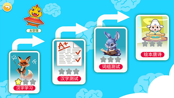 答:开始几个开放,学完前面的剧情和字自动解锁后面的,孩子有成就感更爱学。