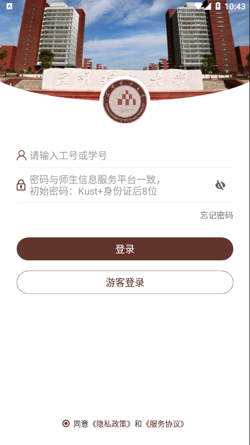 1、在应用商店搜索“智慧昆工”下载安装,首次登录需使用学校统一身份认证账号。