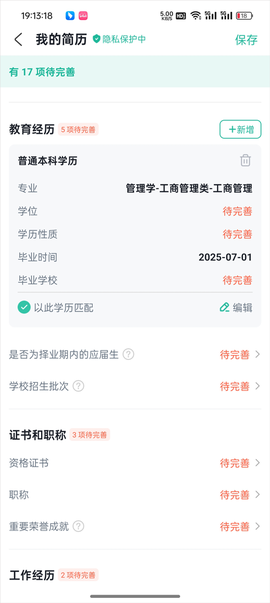 2、在简历页面中找到教育经历部分,选择你想要修改的学历条目,点击“学历”进入详细信息编辑界面。