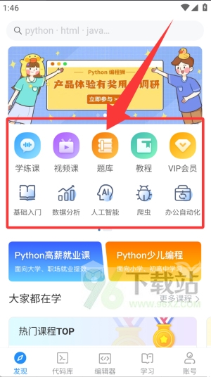 4、选一个感兴趣的模块开始体验——看视频、写代码、做题,让知识真正为你所用。