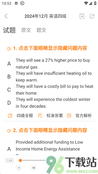 3、进去之后就能边听音频边看题目和解析,学习节奏自己掌控。