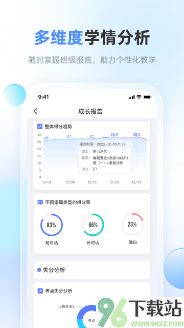 1、学生能按自己的节奏练听力,系统会根据表现动态调整后续练习;