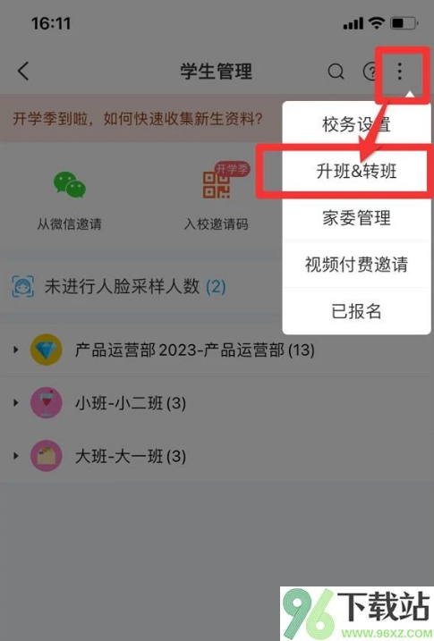 2、在班级列表页,点右上角三个点,选择【升班 & 转班】功能。