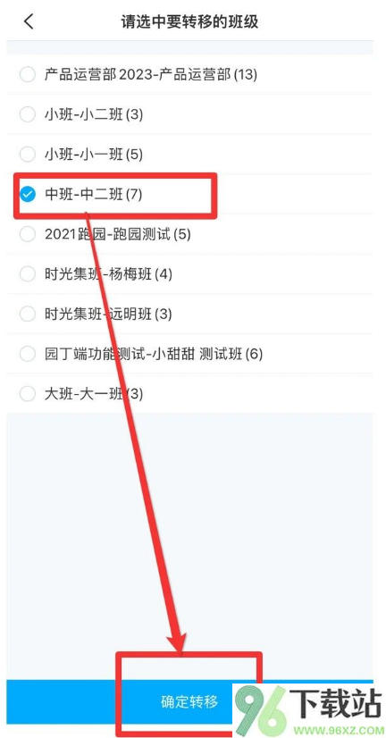 4、接着选择目标年级和班级,确认无误后点【确定转移】,所有选中的学生就会一次性转入新班级,效率高还不容易出错。