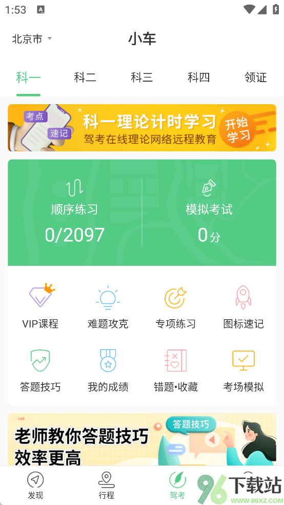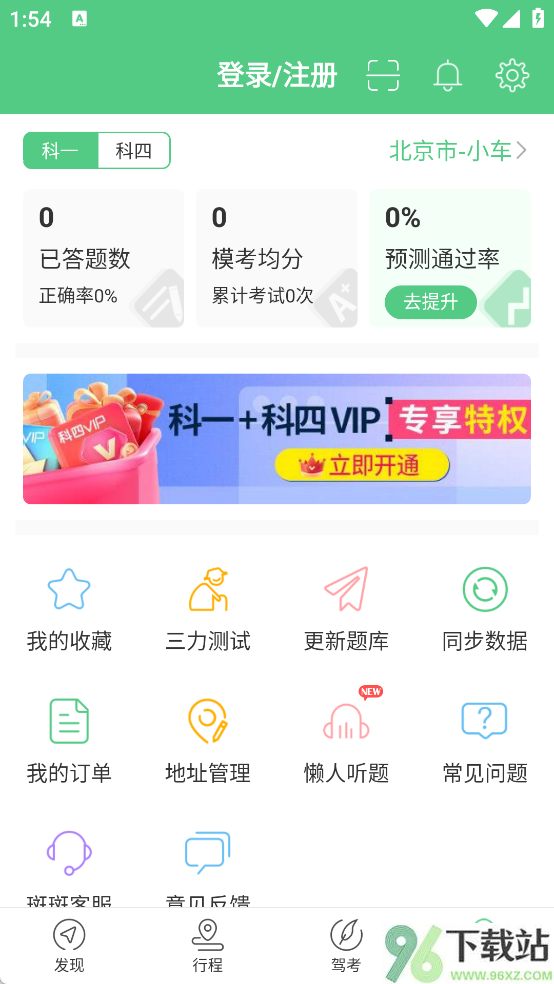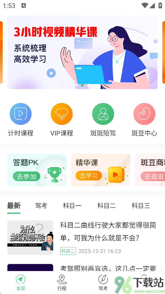 3、题库加载完,点进“发现”页面,就能看到计时培训课程、VIP专项训练这些实用功能,按需选择学习路径。
