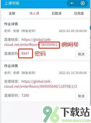 先通过拓课云plus的小程序查看当节课的房间号和密码,通常由老师或教务提前发送。