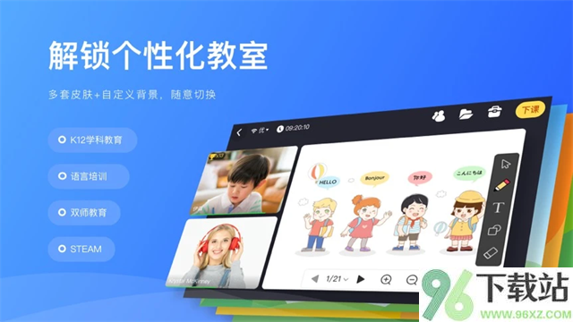 4、融合实时音视频与动态课件,打造接近线下课堂的沉浸式学习环境。