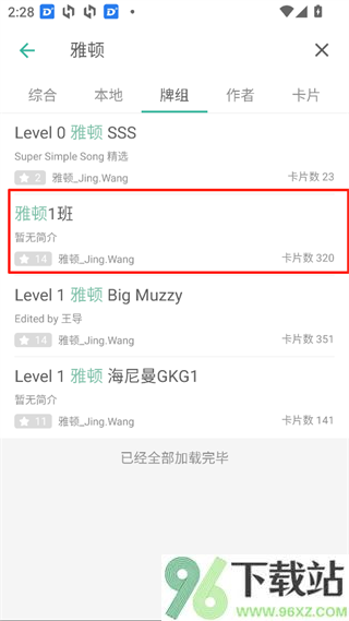 3、比如输入“雅顿”,就能找到“雅顿1班”这类现成的卡片集。