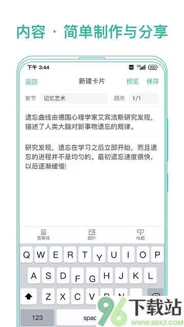 1、知识点能做成卡片形式,支持文字、图片和音频,怎么记舒服就怎么来。