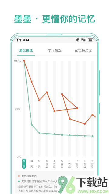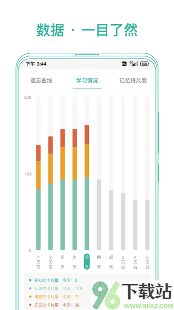 4、后台会记录你的记忆数据,比如遗忘曲线、记忆保持情况、每天学了多少,一目了然看到进步轨迹。