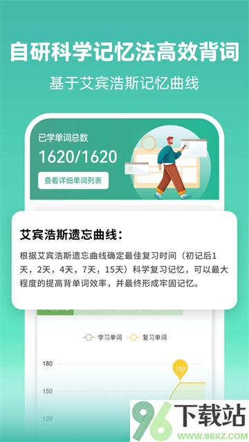 这款App的学习方式挺灵活,闯关打卡、字母跟读、拼读训练、视频课程、题库自测全都有。特别贴心的是,它会根据艾宾浩斯遗忘曲线自动安排复习节奏,你不用操心什么时候该背、什么时候该巩固,系统都帮你规划好了。想利用通勤、午休这些碎片时间悄悄进步?它正合适。