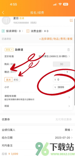 7、这一步可以叠加优惠,比如用折扣、送赠课,最后选好支付方式完成付款。