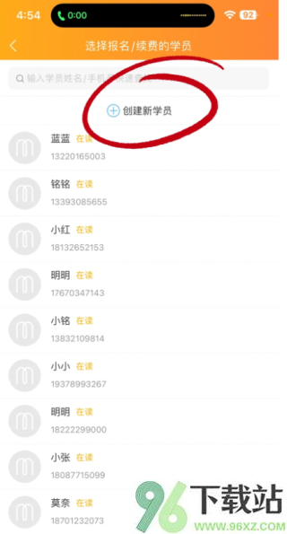 2、如果是老学员直接选,新学员就点“添加新学员”开始录入。