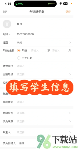 3、填好学员的基本信息,比如姓名、年龄、联系方式这些。
