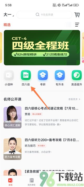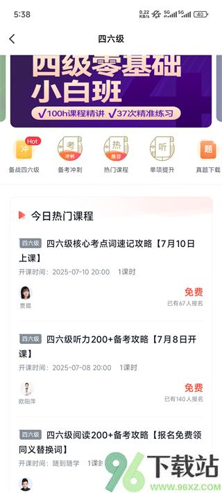 3、如果目标是过四六级,就点进对应的专区,里面按题型和难度做了分类。
