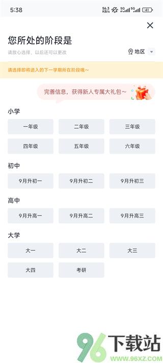 1、打开App后,先选你目前所在的年级或学习阶段,比如高一、大二,或者直接选“考研”“四六级”这类目标。