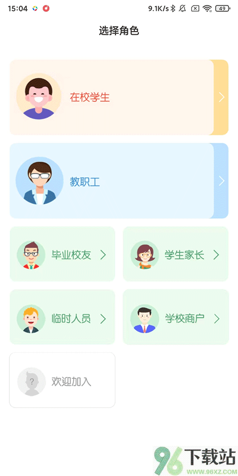 3、根据提示选择你的身份类型,比如学生或教职工;
