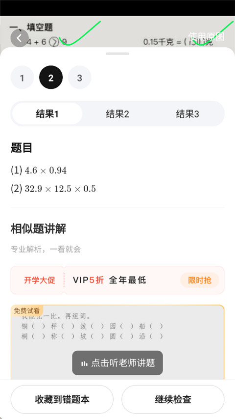 第四步:图片传上去之后,系统会自动开始识别并批改作业内容