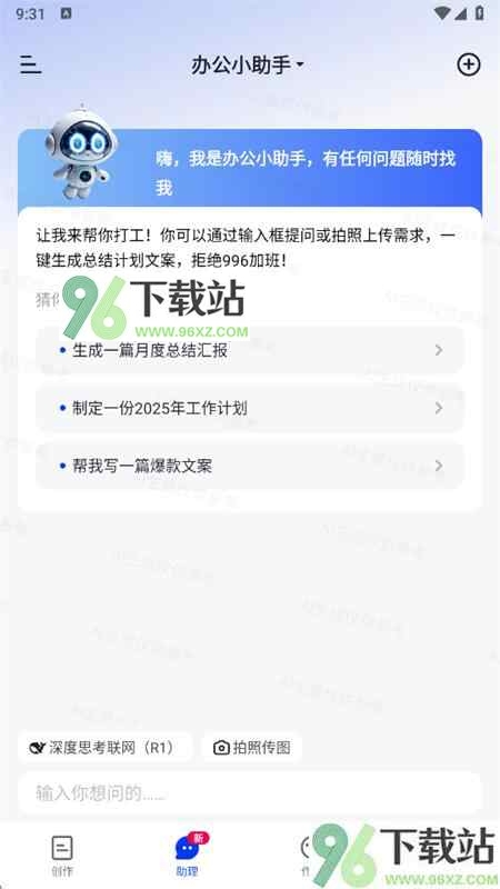 4、在AI助理页面里,直接像聊天一样打出你的问题,比如“下周工作计划怎么写”,它会快速回复一条实用建议。