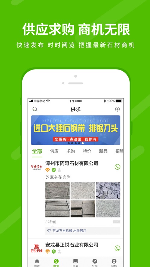 拿出手机拍个照就能立马发布你的石材货源或者求购信息,让生意机会主动找上门。