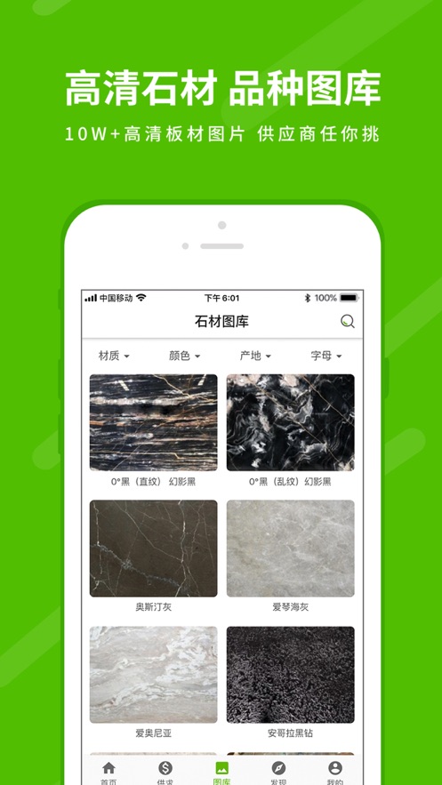 汇集了十万多张高清的石材大图,不管是看纹路还是查产地都能看得清清楚楚。