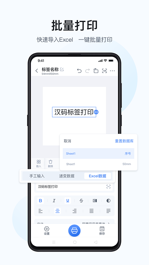 支持导入Excel数据或设置流水号,实现大量标签的一次性自动打印。