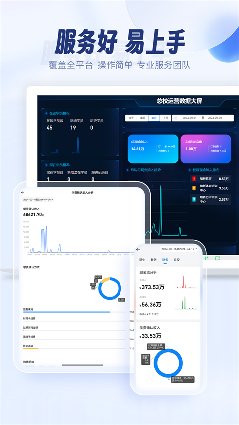 收款流水课消利润这些多种支付方式自动记,报表随时拉对账续费提醒全有不乱花钱。