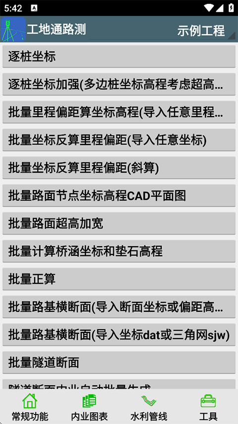工地通路测APP是专门给咱们干工程的兄弟们准备的一个手机工具,说实话,在工地上跑,有时候算个坐标、量个断面,没点趁手的家伙事是真麻烦,这软件里头就集成了好多测量和换算的工具,不管是修路、架桥、还是挖地铁隧道,基本上常见的工程测量需求它都能帮上忙,用它来干活,能省不少劲儿,也少出点差错,省得返工,它里面那个计算功能也挺给力,像什么路线坐标、隧道断面、边坡数据这些复杂的计算,你不用自己费脑子去算,把数输进去结果很快就出来了,又快又准,确实能给咱们减少不少工作量,让干活效率高不少,挺实在的一个软件。
